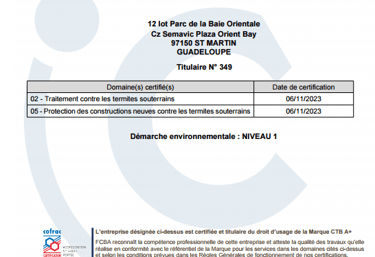 Nous sommes certifiés CTB-A+ et notre personnel possède un certibiocide pour garantir des interventions efficaces et sécurisées.