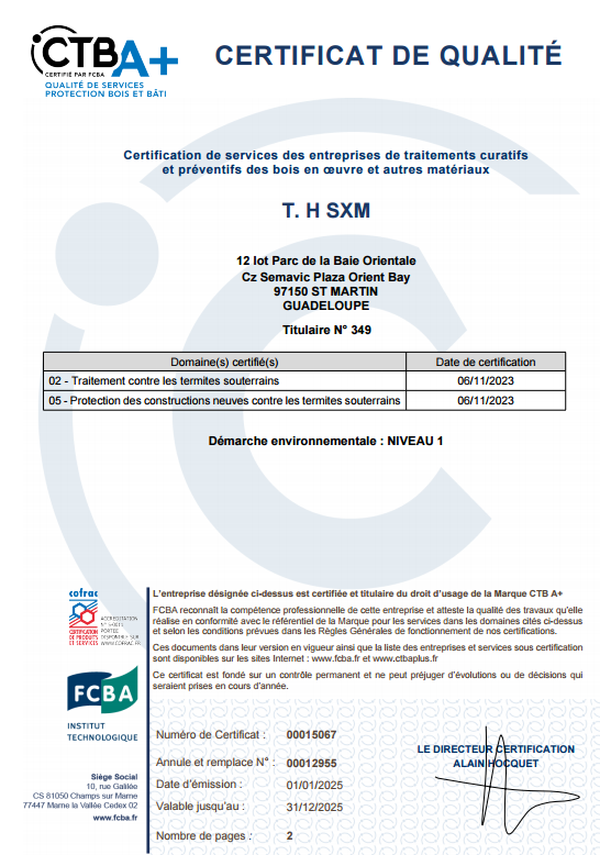 Certifiée CTB-A+, personnel formé et certibiocide qualifié.